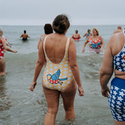 A funky, fun, unstructured swimsuit perfect for Bluetit dips!