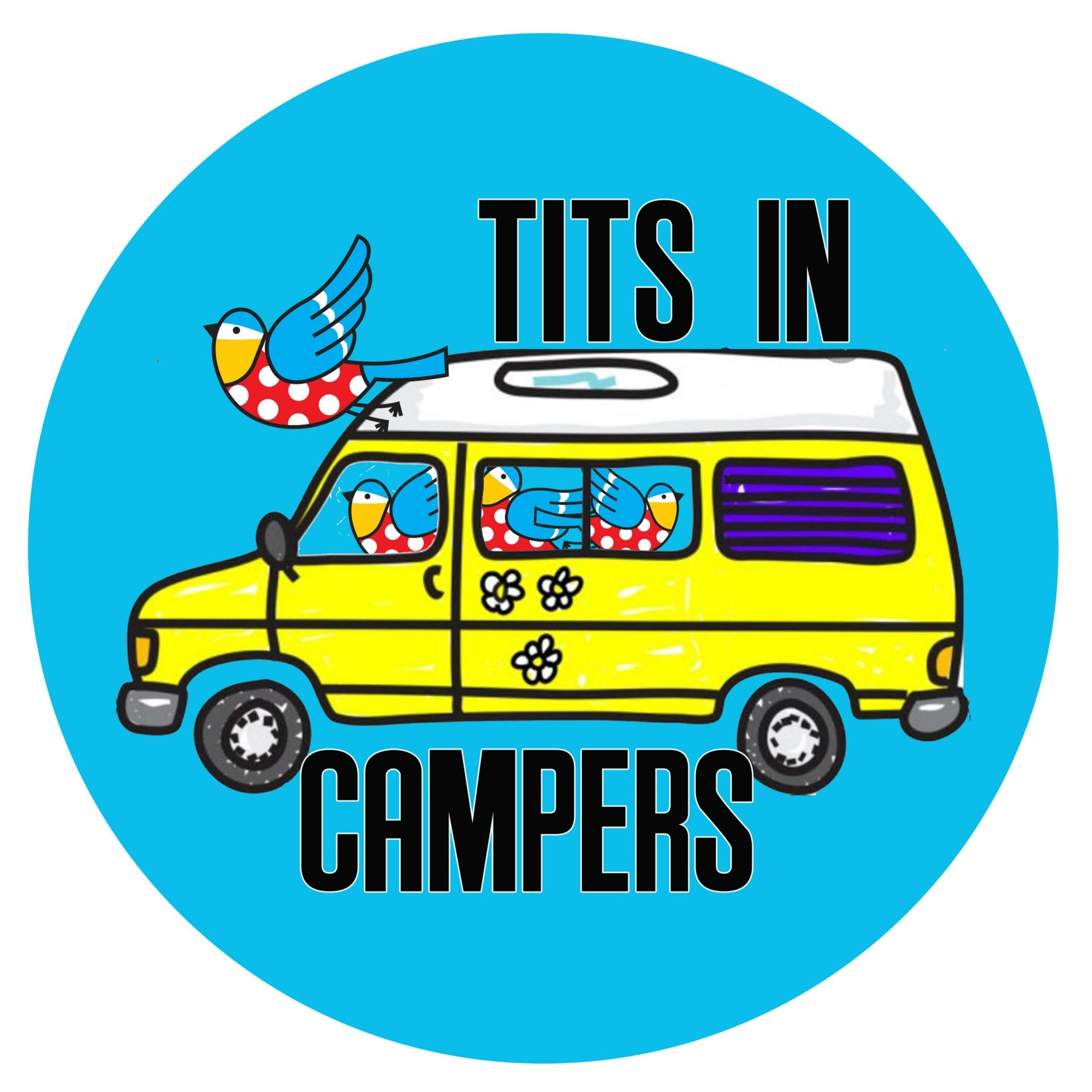 This TITS IN CAMPERS badge is for those Tits who adore their campervan!
