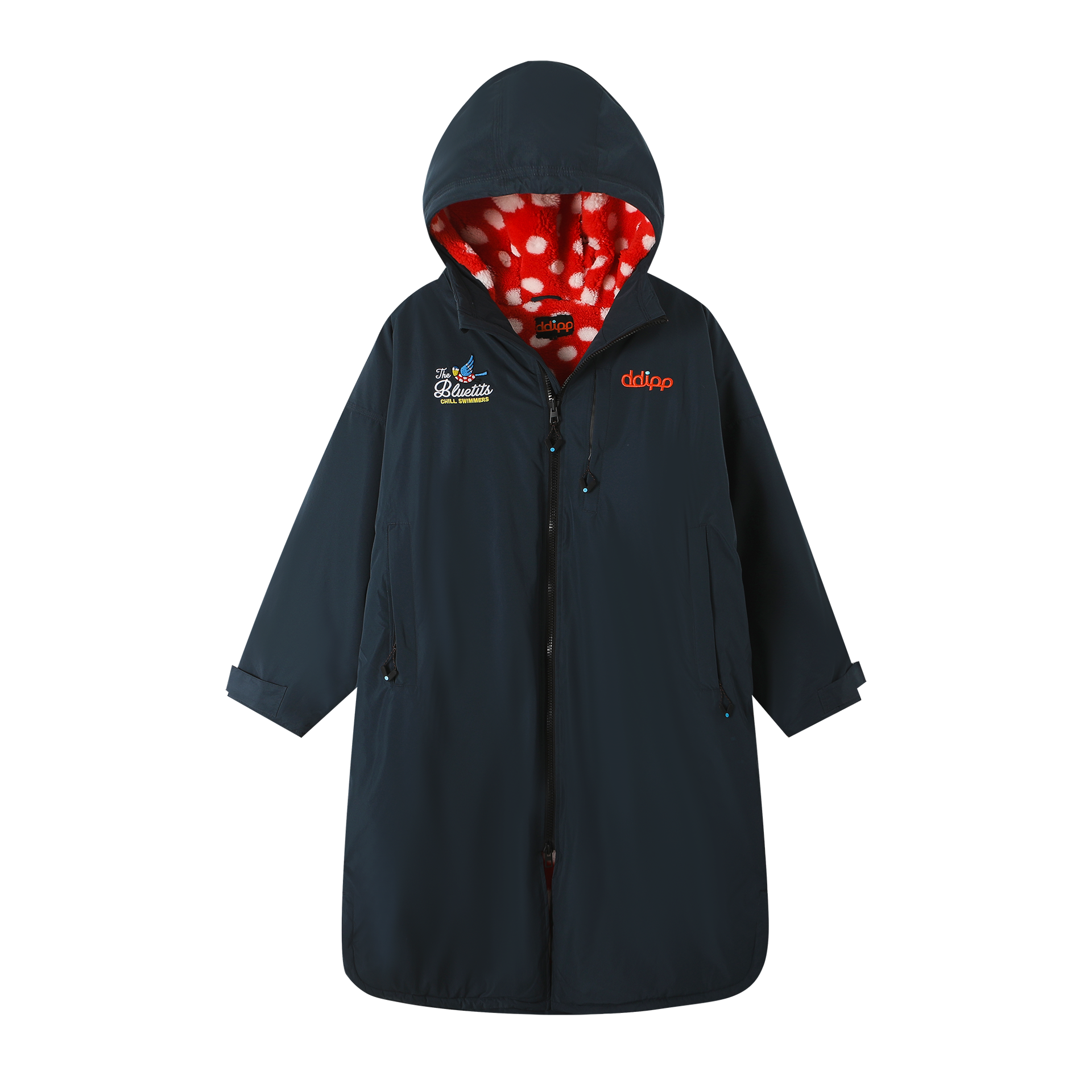 Combining the best of ddipp’s lightweight, recycled, and protective features such as 5000mm waterproofing and breathable lining, the Morlo Bluetits Changing Robe stands out with its unique Bluetits flair. The irresistibly soft Polka Dot lining adds a pop of fun, while the Bluetits logo on the back is unmissable!